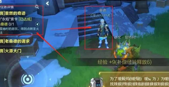 解救被冰封的守护者后,返回桑德那里完成任务的交接。
