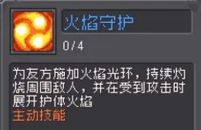 火焰守护是赠一技能,使用后可以持续给队友附加火焰光环,该技能还配合被动技能改变体型。