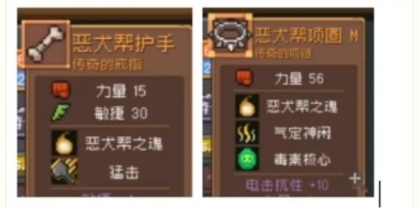 3、套装包括恶犬帮护手和恶犬帮项圈,提升友方暴击,降低自身暴击值。