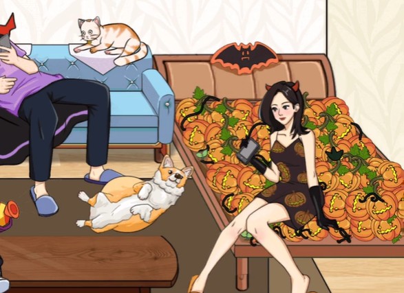 我玩梗贼6找南瓜这关开局点击床单和花盆、拉开加速器抽屉、打开冰箱,然后再点击小孩的糖果枪、墙上的南瓜钟和沙发上男子怀里的抱枕就会出现一大推南瓜,最后再连续点击五次狗子的肚皮。