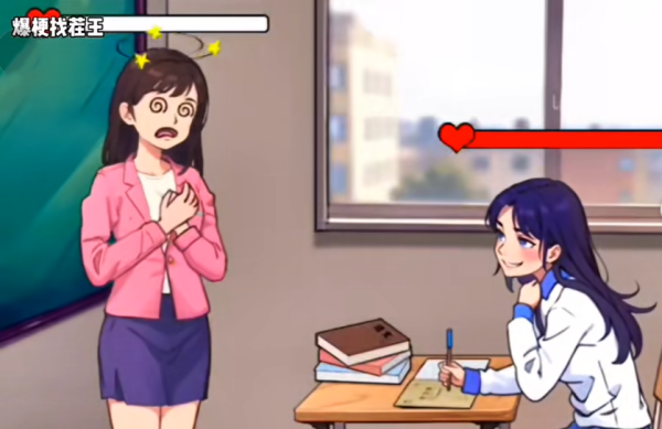 爆梗找茬王大小学生这一关玩家需要在老师说话之前选出老师将要说出去的话,总共有13句,玩家全部说完之后就可以顺利过关,选择时注意头上的心形进度条,老师头上的进度条清空就可以顺利过关。